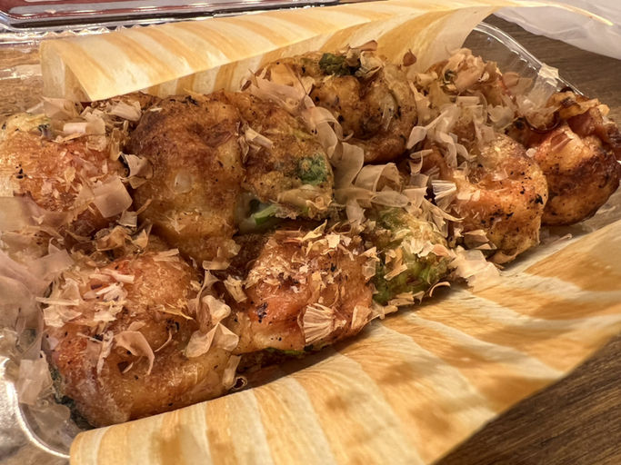 注文してから目の前の鉄板で作ってくれる。 出来立てをテイクアウト! とっても優しいおばちゃんが焼いてくれるたこ焼きは絶品ですよ!