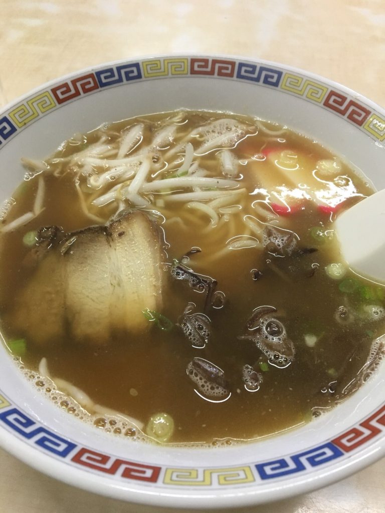 「中華そば」は、少し甘めの醤油味で、シンプルながら懐かしい味が楽しめます。地元の人たちに人気のメニューです。