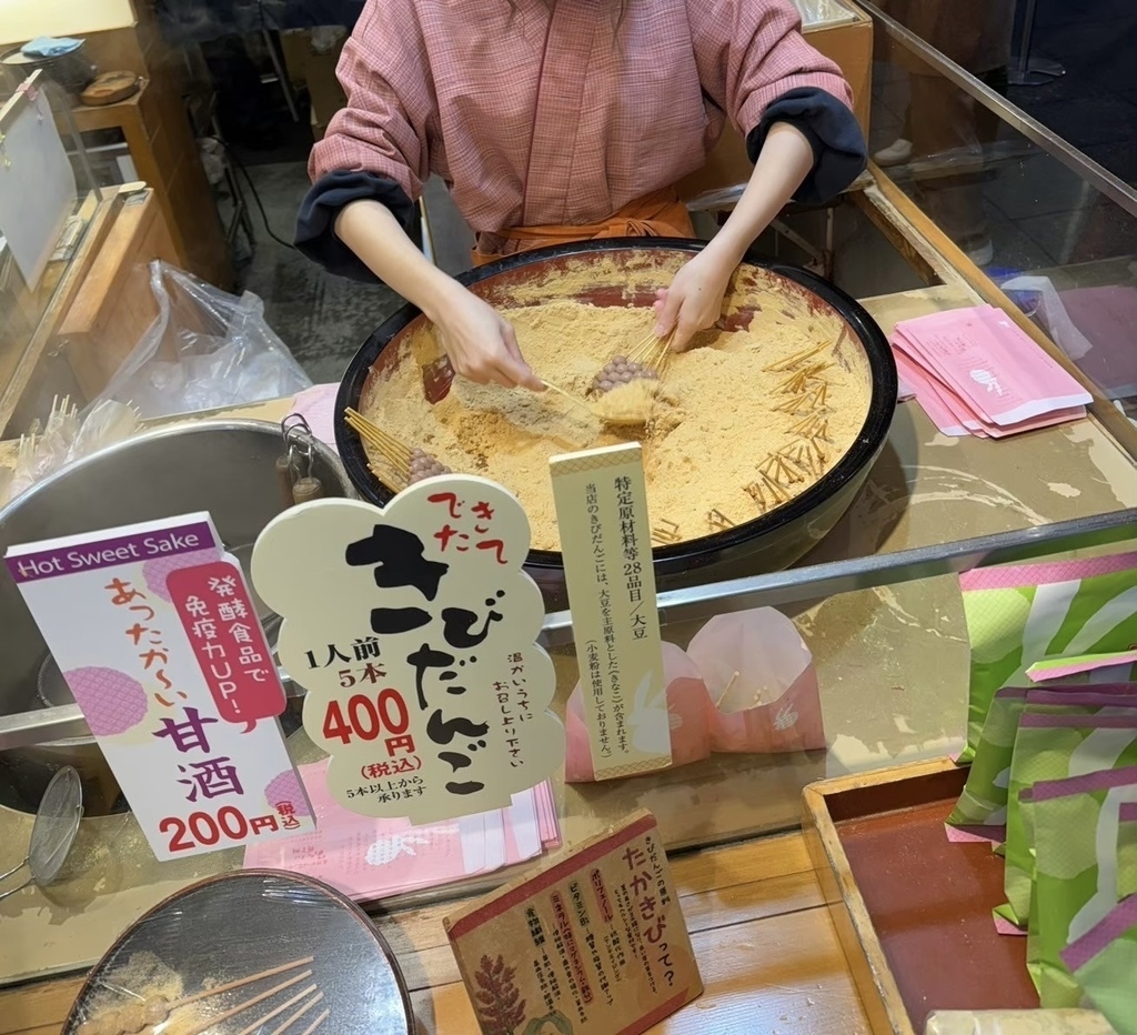 この満足度で1袋450円というお値段は、まさにコスパ最強!さらに嬉しいのが、季節ごとの名脇役たちです。夏にはキリッと冷えた冷やし抹茶、冬には心まで温まる甘酒が用意されていて、お団子との相性は200%。ドリンクと一緒に楽しめば、浅草での「整い」体験が完成します。また、自宅でもこの味を再現できる「おみやげきびだんご」は、10本入って600円という驚きのプライス。家族へのプレゼントや自分へのご褒美にぴったりです。キャッシュレス時代にあえて「現金のみ」というスタイルも、江戸の伝統を守るこだわりを感じて逆にカッコいいですよね。小銭を用意して、粋に「1袋ください!」と注文するのが、浅草通への第一歩かもしれません。